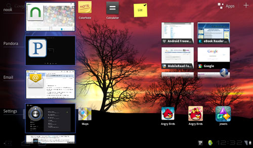 Being designed for tablets, Honeycomb is visually a lot different from earlier versions of Android. There's a big focus on widgets and images and making use of tablets' larger screens. All the buttons you need for navigation are on-screen in the lower left corner, which suits the Nook Color well since it is limited in the button department.